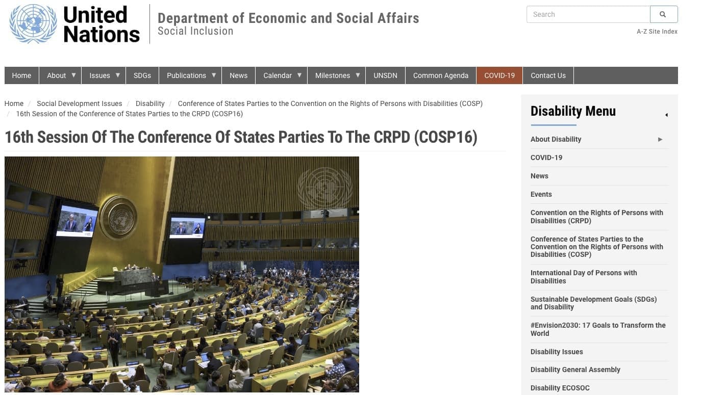 ※障害者権利条約 (Convention on the Rights of Persons with Disabilities)とは、あらゆる障害者(身体障害、知的障害および精神障害など)の、尊厳と権利を保障するための条約で、2006年12月に第61回国連総会において採択されました。批准国は日本を含め世界186カ国(2023年6月現在)で、日本ではこの条約をもとに2013年に障害者差別解消法が成立しました。