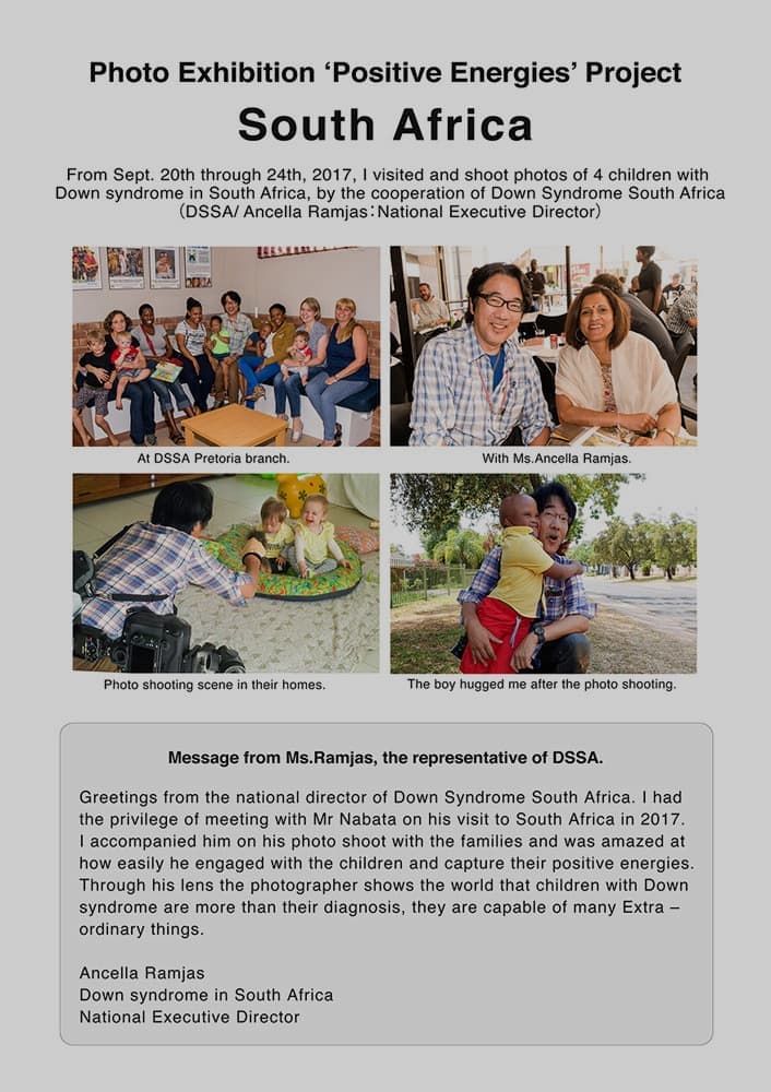 ・我が子はダウン症ですが、いざ家族になってみるとかわいくてしょうがありません。世界のダウ ンの子どもたちを見て、うちの子にもっと世界を見せてあげたいと思いました。とてもかわいい 写真ありがとうございました。我が子をこれからも大切に育てていきます。